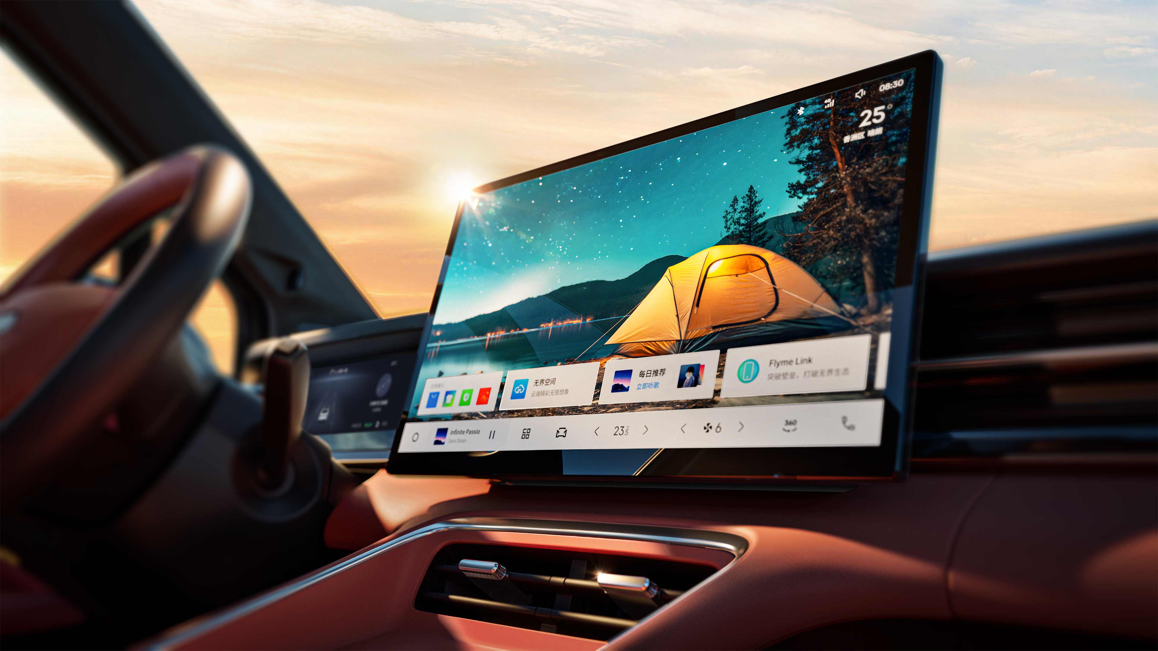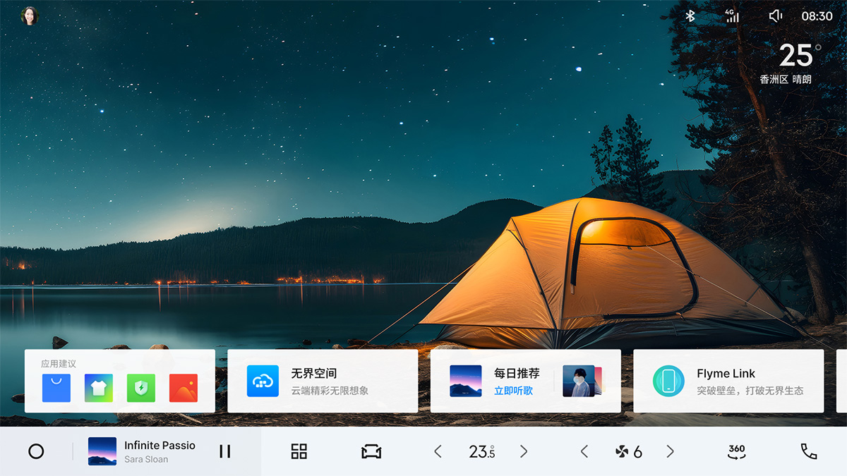 16 扬 Flyme Sound 沉浸声场,1000W独立数字功放,7.1立体环绕声,4种头枕音响模式,4大虚拟场馆音效